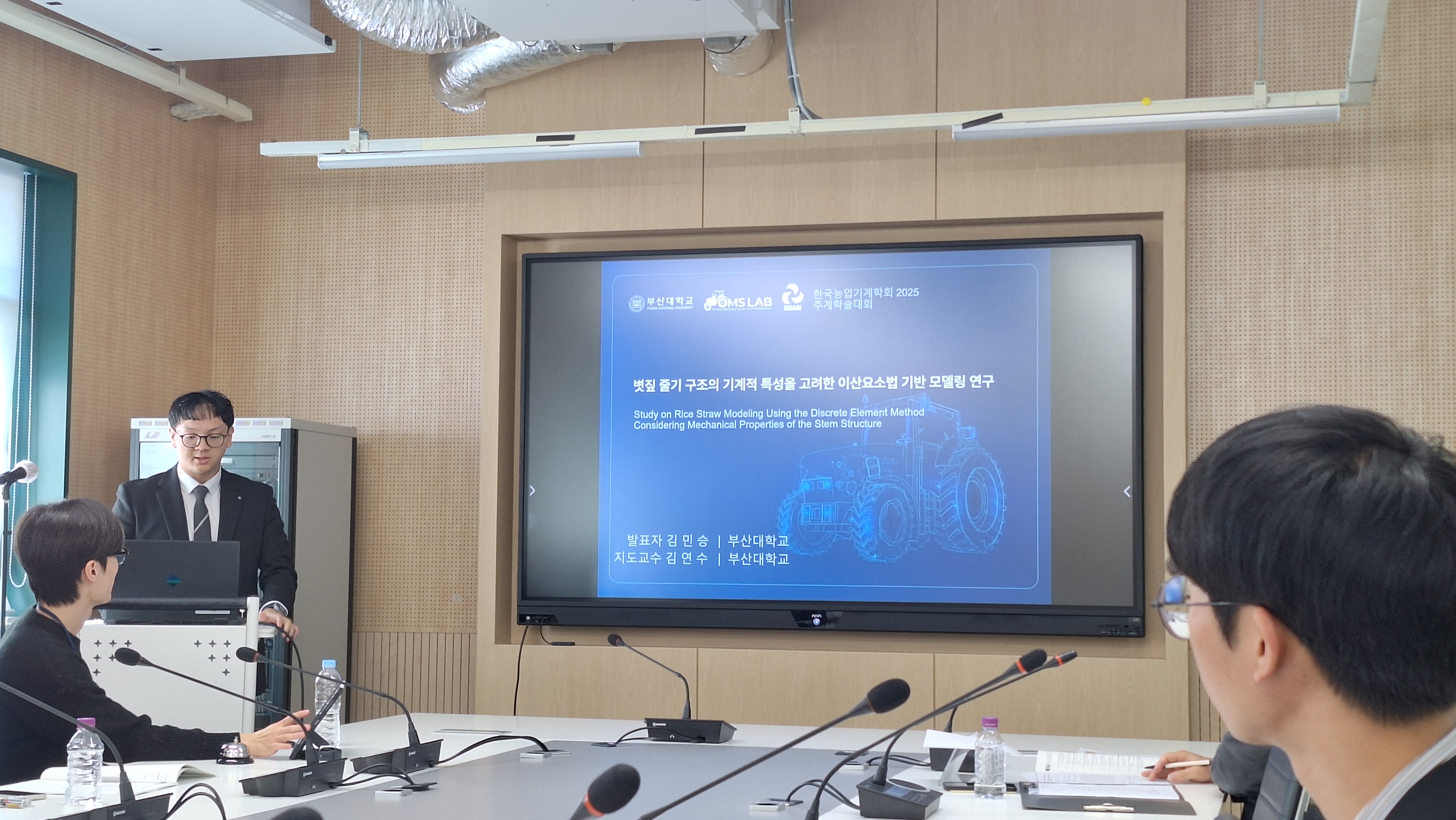 25년 한국농업기계학회 추계학술대회 석사과정생 김민승 (구두발표), 학-석사 연계과정생 최세오, 정대위 (구두발표) 참여하였습니다.